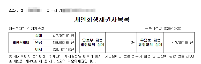 총채무는 이자포함하여 4억1700여만원 되시는 분이셨습니다.